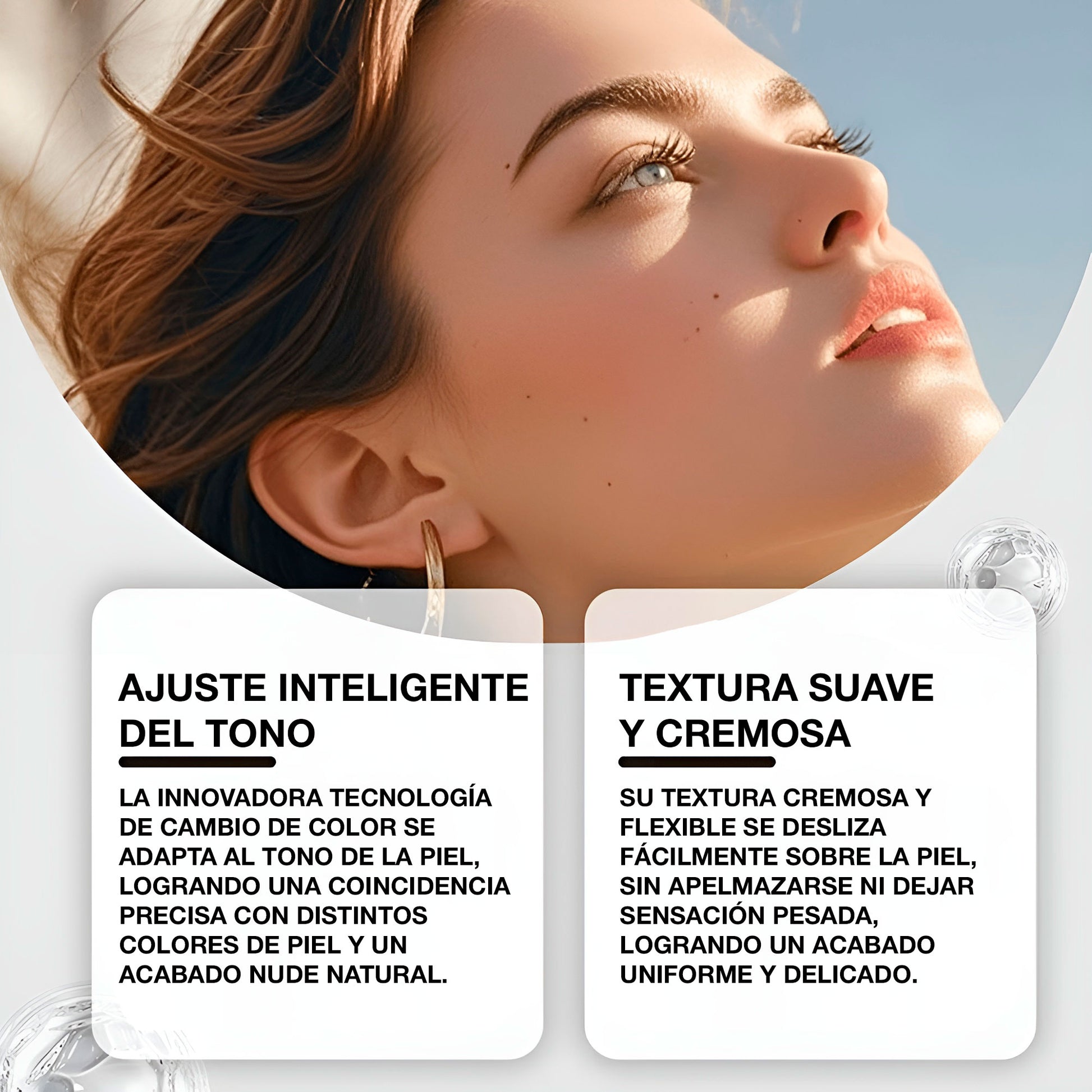 - 🎨 Fórmula inteligente que cambia de color, se adapta automáticamente a tu tono de piel para una cobertura uniforme.